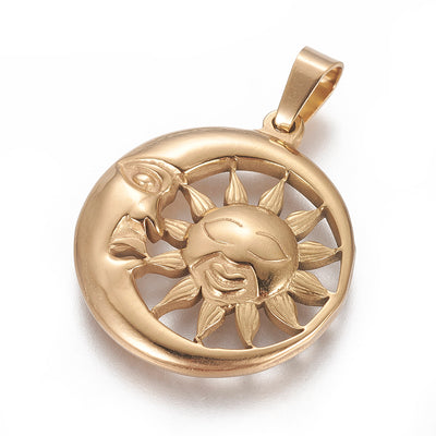 Get your hands on this one-of-a-kind Stainless Steel Gold Sun with Moon Pendant! Perfect for adding a touch of uniqueness to any outfit. Measuring 29x25.5x3.5mm with a 4x6mm bail hole, this pendant is made of high quality stainless steel and is only available at our San Juan and online stores. Hurry, limited quantities available!
