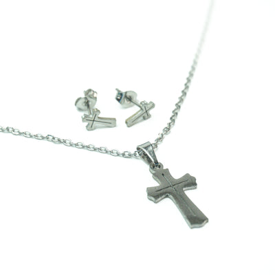 18in Stainless Steel Necklace & Earrings (Cross) - the perfect addition to your jewelry collection! Available in gold or silver options, this package includes 1 set.