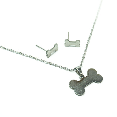 Dazzle your look with this Sparkling Stainless Steel Necklace & Earrings Dog Bones Set! This set comes with a captivating chain necklace and matching earrings in either gold or silver.