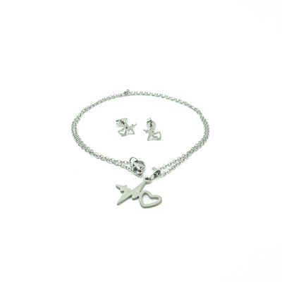 Get ready to fall in love with our Stainless Steel Necklace & Earrings Set (Heartbeat line with Heart)! This set includes a charming chain necklace (18 inches long), a stunning pendant, and a darling pair of earrings. It's available in both silver and gold, so you can choose the perfect match for you. Don't wait, get yours today!