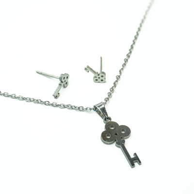 Dazzle your look with this Sparkling Stainless Steel Necklace & Earrings Keys Set! This set comes with a captivating chain necklace and matching earrings in either gold or silver.