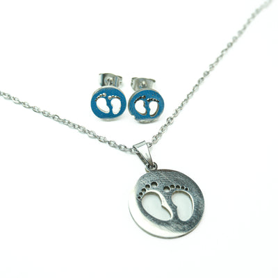 Dazzle your look with this Sparkling Stainless Steel Necklace & Earrings Round Footprints Set! This set comes with a captivating chain necklace and matching earrings in either gold or silver.