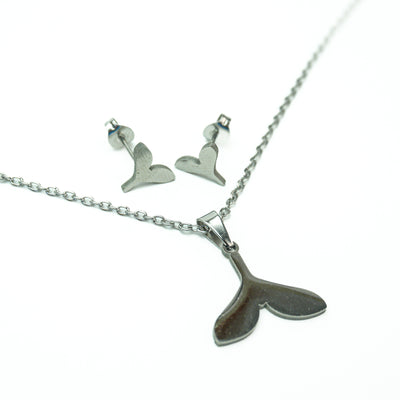 Dazzle your look with this Sparkling Stainless Steel Necklace & Earrings Whale Tails Set! This set comes with a captivating chain necklace and matching earrings in either gold or silver.
