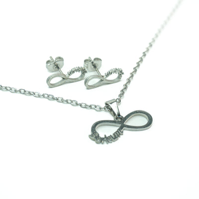 Stainless Steel Necklace & Earrings Silver Set (Infinity Symbol with word Love)