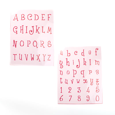 This Alphabet & Numbers Stencil set includes both capital and lowercase letters of the alphabet and numbers, all on two 8.5 x 11 inch sheets. Perfect for a variety of arts and crafts projects needing precision lettering and numbers. Create designs with absolute accuracy.