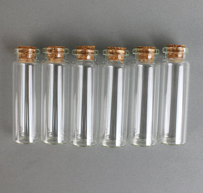 Get ready to pour on the charm with this 70mm tall x 22mm wide set of 6 Glass Bottles with Cork, each with a 20ml (0.67 oz) capacity. Choose between clear or amber glass for your perfect match.