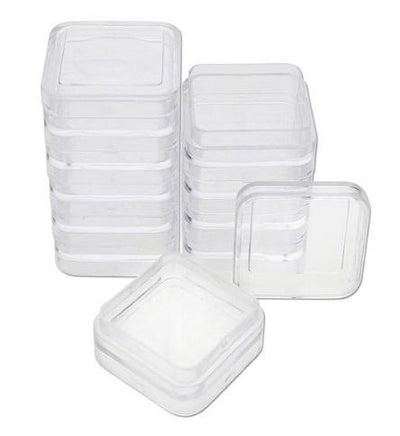 This storage has 10 stackable containers and 2 lids, each jar measures 1.25 long inches x 1.25 inches wide x 0.6 inches tall. Great for storing beads, rhinestones and more!