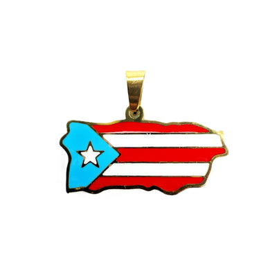 This 26.5x11.5mm stainless steel pendant features a detailed Puerto Rico map in a gold-tone finish, accented with a vibrant enamel flag. Crafted for durability and lasting color, it combines precise design with corrosion resistance. Ideal for jewelry makers seeking a high-quality, culturally meaningful piece that stands out with expert craftsmanship and refined aesthetics.
