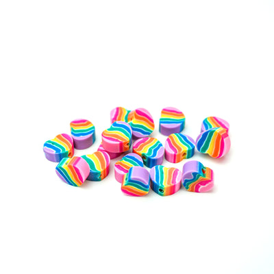 Craft stunning jewelry with this set of 50 Polymer Clay Beads showcasing vibrant Rainbow Hearts. Each bead is carefully handcrafted, making them unique and perfect for creating one-of-a-kind pieces. Whether you are a beginner or an experienced jeweler, these beads will add a pop of color to your collection.