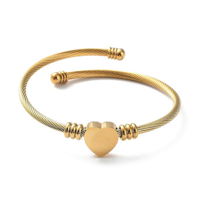 Stainless Steel Heart Bracelet for the Quirky Fashionista - Quality 304 Steel Cuff with 201 Beaded Heart, 3mm wide, 58mm inner diameter - Funky 12x12mm heart charm - Comes in gold and silver, but hurry - limited in San Juan and online!