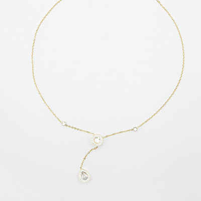 Stainless Steel Gold Chain Lariat Necklace with Rhinestones