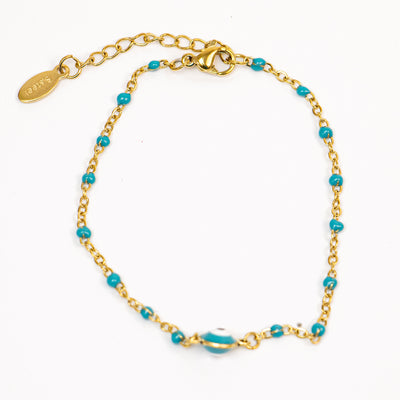 Stainless Steel Gold Colorful Satellite Blue Evil Eye Connector Bracelet Jewelry