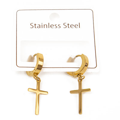 Stainless Steel Gold Hoop Earrings with Cross Pendant
