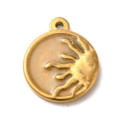 Shine bright with this Stainless Steel Gold Sun Glow in the Dark Charm! Measuring 22x18x3mm with a 1.6mm inner hole, this charm is the perfect addition to any package. One piece per pack, grab one now and let your outfit glow!
