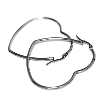 Stainless Steel Heart Hoop Earring 50mm (2 PCS)